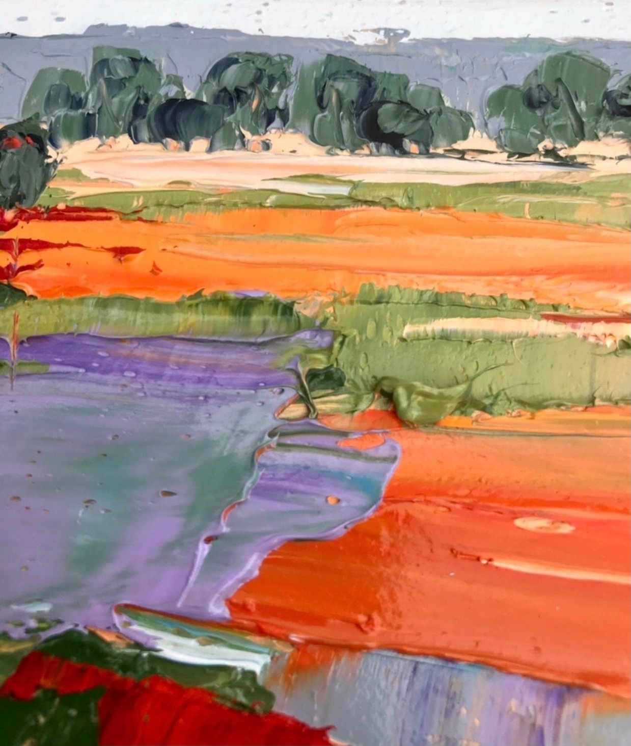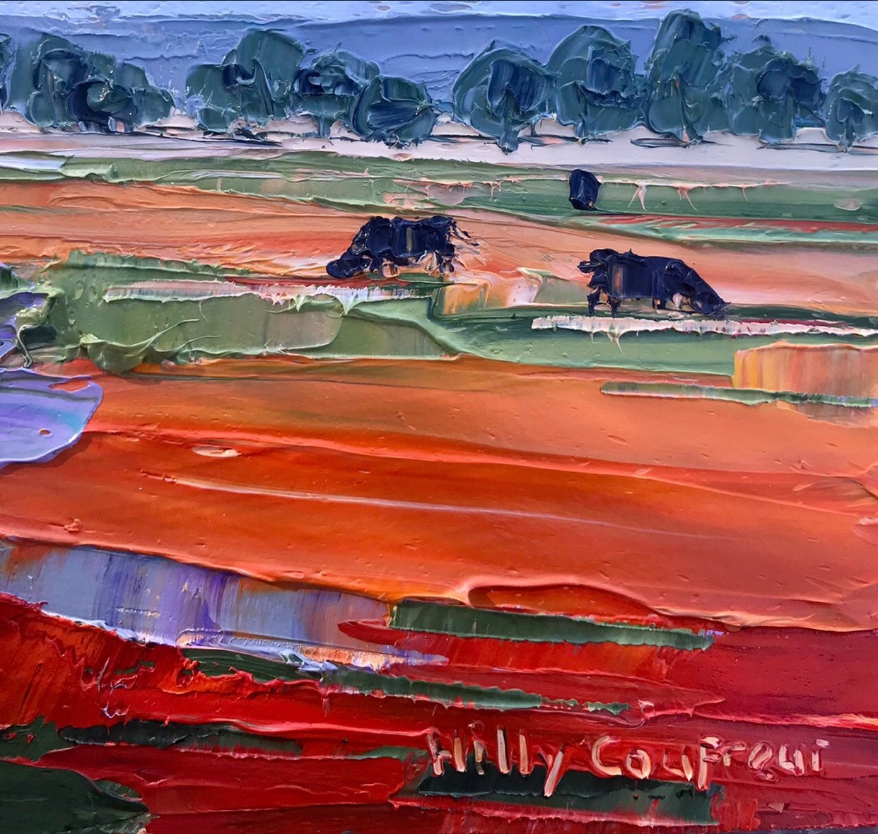I paint with palette knife and thick buttery oil paints.