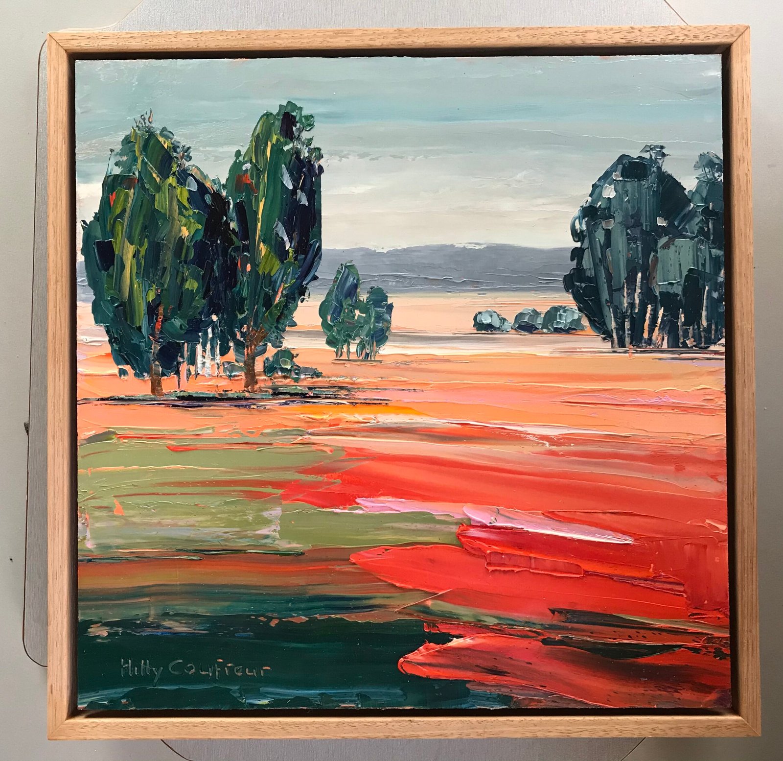 Plein Air painting done on our daughters farm in the South West of WA. Using buttery oil paints and palette knife I abstract the landscape.