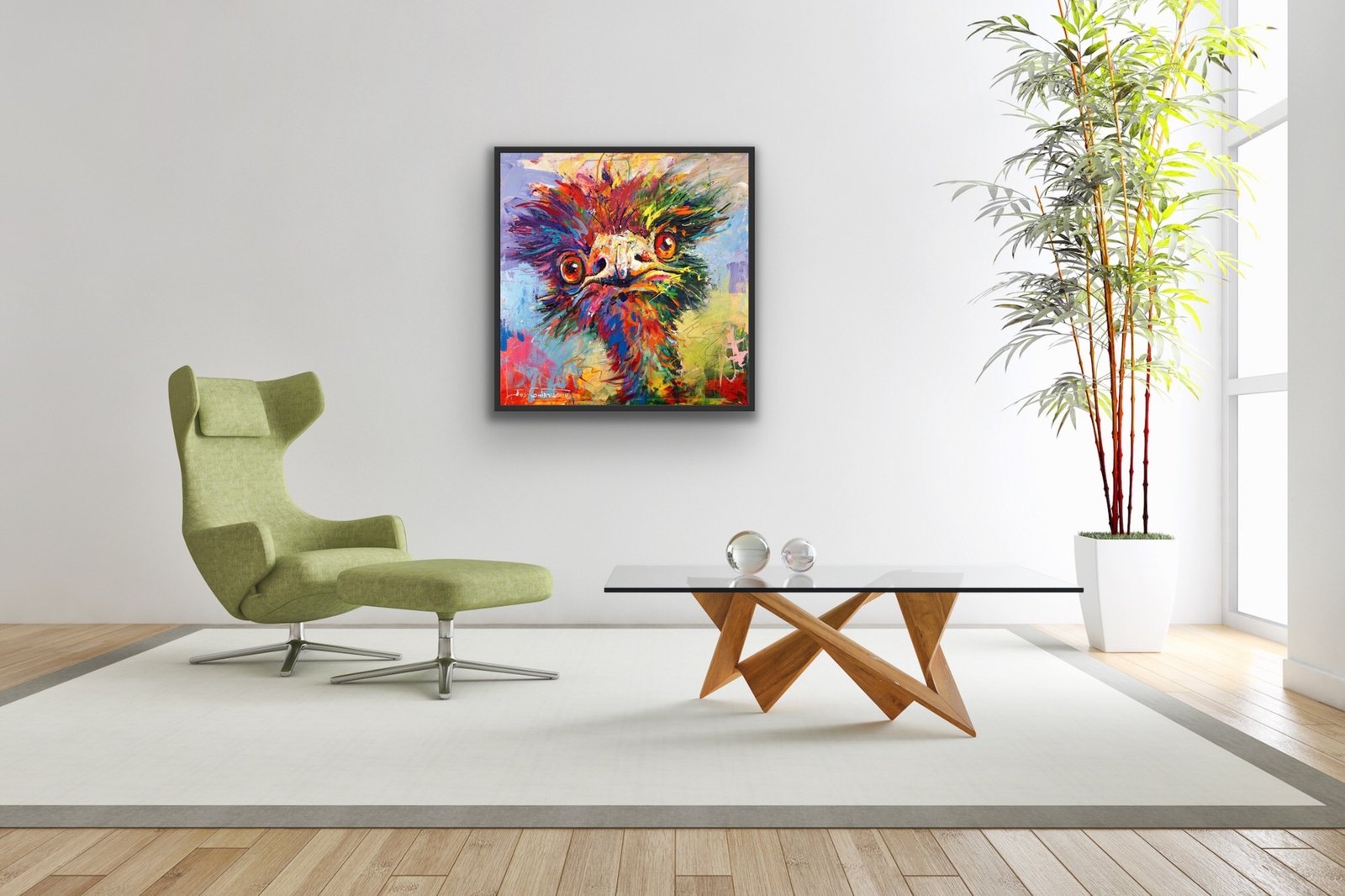 Acrylic on canvas, framed in wood floating frame. 76cmx76cm