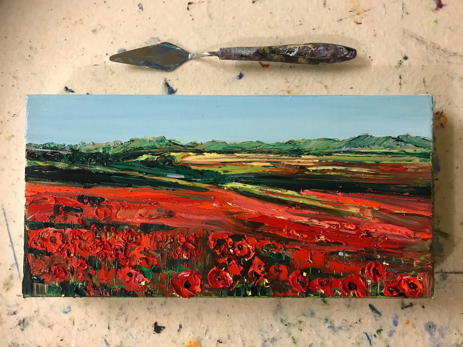 I paint with palette knife and thick buttery oil paints.