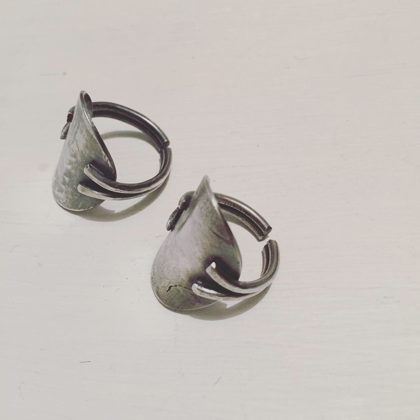 Sterling Silver Saddle Rings with Bracken Fern Imprint (adjustable ring bands)